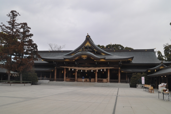 | 上左 寒川神社拝殿 年間200万の参拝者を誇る 上中 鶴嶺八幡宮 茅ヶ崎市浜之郷440 源氏縁の神社で関東進出最初の地 平安時代後期源頼義が平忠常の乱を平定した折 このあたり懐島郷の風光明媚な小丘に源氏の守り神石清水八幡を勧請したのに始る その後前9年の役で奥州に向うとき頼義・義家親子が戦勝を祈願して植えたのが始まりという その後源氏の崇敬を受け頼朝の鎌倉幕府へとつながる源氏の日本統一の歴史の中で関東武士の心のよりどころとなる 右の大銀杏は神奈川銘木100選にも選ばれている鶴峯の大銀杏で樹齢1030年以上あり源頼義お手植えの銀杏で八幡太郎と呼ばれる 上右 国道1号線から鶴峯八幡宮の参道入り口にある大鳥居と松並木が続く |