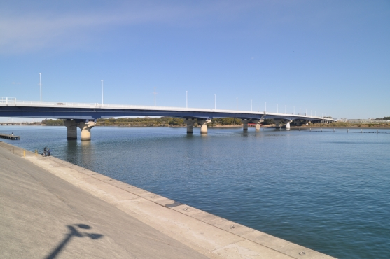 相模川下流河口一帯は湘南潮来と呼ばれる水郷地帯 マリンスポーツや釣り花火大会等で賑わう所 湘南大橋は国道134号線に架かる橋で全長700m トラスコとは機械工具卸会社トラスコ中山の命名権で珍しいネーミング橋だ