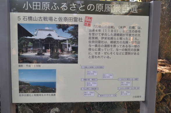 左端 源頼朝挙兵の地碑 石橋山古戦場 中 石橋山 右端 源頼朝挙兵の地 佐奈田霊社入り口 小田原市石橋420