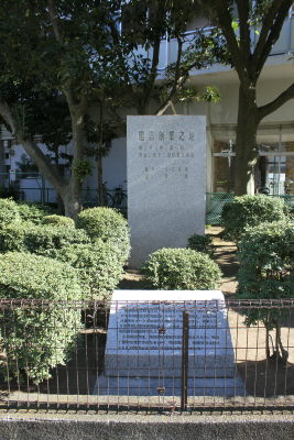 | 外国人築地居留地区 中央区明石町 江戸幕府は安政5年(1858)6月アメリカと修好通商条約に調印し同年オランダ・ロシア・イギリス・フランスとも締結した(安政5カ国条約) 外国人居留地区はこれらの国々の居住や通商のための専用特区が設けられた 江戸(東京)の開市は明治元年11月19日現在地の明石町地区に築地外国人居留地が設定された 築地居留地は商館の多かった横浜・神戸と違い公使館・領事館を始め宣教師・医師・教師などの知識人居住したため教会・病院・学校などが数多く開かれ教育を行った所である この為この辺り一帯はキリスト系学校や病院の発祥の地として数多くの記念碑が残されている