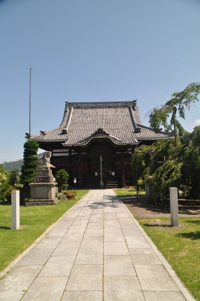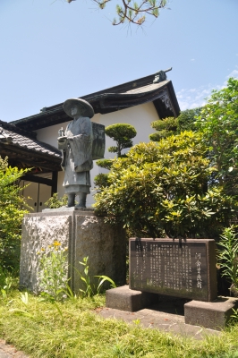左端 諏訪大社下社前宮の御柱 右2点 河合曽良菩提寺 桑原山正願寺 諏訪市岡村1-15-3 新田次郎の墓もあるそうです 右 曾良像 |