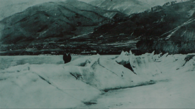 左 岡谷製糸博物館(シルクファクトおかや) 日本で唯一の生糸を生産する現場を直視できる博物館 岡谷市郷田1-4-8 明治時代 野麦峠・女工哀史にその名を残す信州は製糸産業の一大産地でした その代表産地が岡谷市です シルクの世界を五感で感ずることのできる博物館がキャッチフレーズ. 当日は残念ながら休館日でした 右 戦前の諏訪湖の御神渡り現象(グリーンピースネットより拝借) 当時は人の背丈以上の盛り上がり現象があったようだ 八剱神社には500年に及ぶ御神渡り記録帖が残されている |