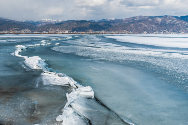 左 氷結した諏訪湖と御神渡り(グリーンピースネットより拝借) 厳寒の諏訪湖がマイナス10℃以下で10㎝以上の厚さに全面凍結し昼夜の温度差が大きいときに轟音とともに氷が盛り上がる自然現象 最近は2018年以降は7年にわたり御神渡りは現象は起きていない(明けの海) 温暖化の影響であったとしても規模は数十cmの小規模らしい 右 諏訪湖 諏訪市・岡谷市・下諏訪市に囲まれた 標高759m・周囲16kmの長野県一の湖水 諏訪大社は有名 空澄みて 寒きひと日に みずうみに 氷の裂ける 音ひびくなり 島木赤彦 |