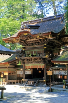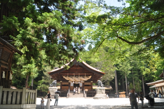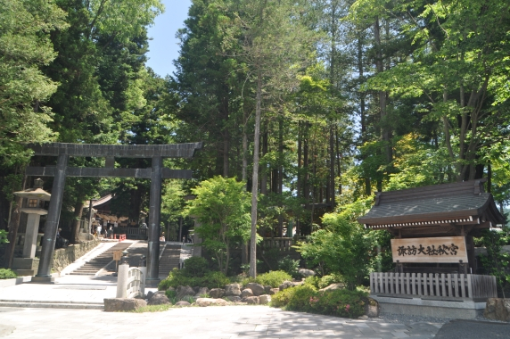 上2点 信州国 一宮 諏訪大社上社本宮 鎮座起源については日本書紀持統天皇5年(692)を初見としてあり1500~2000年前ともいわれ日本最古の神社の一つ 出雲の国の大国主命の息子建御名方主命が国譲りのため高天原の天照大神からの使者建御雷命との力比べに負け投げ飛ばされ豊芦原の中つ国は天照大神に譲られた 建御名方命は出雲から逃げ去りたどり着いたところが山奥の湖の傍らであった そこが今の諏訪湖である だから大社の御祭神は建御名方と妃神八坂刀売神である 尚兄神八重事代神も合祀されている つまり出雲の神様と深いつながりのある長い歴史を持つ神社だ |