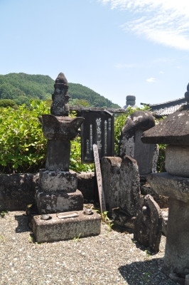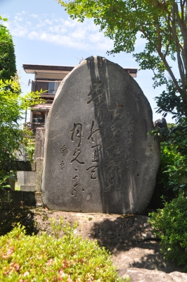 左 曽良の句碑 境内 ゑりわりて 古き住家の 月見かな 右2点 曽良墓碑 曽良辞世の句 春に我 乞食やめても 筑紫かな |