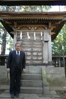 下右 国宝那須国造碑覆堂と宮司の伊藤氏 懇切丁寧に碑文の説明を30分もしていただいた |