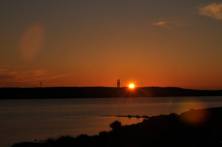 左端 最上川が袖の浦河口にはいる日没の瞬間