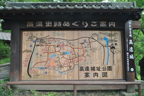 | 左 日本百名城 国指定史跡 高遠城祉公園 伊那市高遠町東高遠810-1 中 城址公園案内図 右端 天下第一の桜の碑 日本三大桜の名所 | |