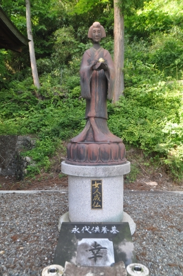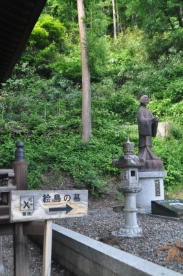 | 上 江戸中期 江戸城大奥大年寄りで7代将軍家綱の生母月光院に使える大奥女中絵島の墓地と像 蓮華寺境内 その大奥の中枢にいる絵島が歌舞伎役者生島新五郎の舞台見物の帰り道大奥出入りの呉服問屋や多くのお供を連れて役者生島を相手にお茶席で当時のスターに時間も忘れて話に花が咲き門限時間を過ぎての大スキャンダル事件に発展した いわゆる絵島生島事件 この事件で1400人が処罰され絵島がここ高遠・生島は三宅島へ・呉服問屋主人は八丈島へそれぞれ遠流・歌舞伎座山村座は廃座・絵島の兄は斬首という見せしめ粛清だった 大奥の日々の息苦しさからの一時の息抜きに過ぎない気の毒な事件であった 浮世には また帰へらめや 武蔵野の 月の光の 影もはづかし 絵島 | |