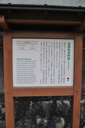 | 左 20年前の資料館 右2点 高瀬家資料館 明治の文豪島崎藤村の姉の園が嫁ぎ『小説家』のモデルで夜明け前の中の一節にある植松の家はこの高瀬家の事でありお粂は園の事であり小説家の中ではお種として登場している 現在も高瀬家の子孫の方が生活していて当時の資料・品物を維持管理している | |