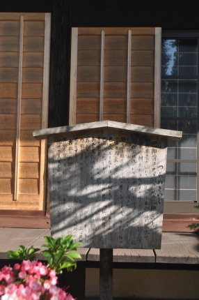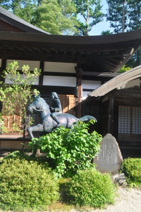 | 左端 騎馬上の巴御前像 中左 巴御前像碑文 冒頭文は 駒のさばきも 鮮やかに 陣立て原に 風騒ぎ 木曽義仲に 我が??? 巴御前の胸騒ぐ云々・・・とあるがあはとよく読めません 中左 つらぬき意地 の立札 だがこのあとは文字が薄くて詠めませんでした 右端 義仲館 木曽郡木曽町2901 徳音寺の隣にある 義仲と巴を後世に伝え語り継ぐ資料館 早朝のため閉館中でしたが義仲と巴の手紙のやり取りもあるとのこと | |