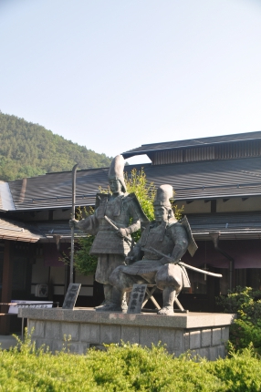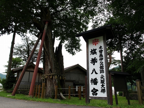 | 左2点 義仲館前の義仲・巴の像 右 木曽義仲旗挙幡宮 木曽郡木曽町日義2156 義仲公が13歳の元服したときこの地に館を建てた地という 治承4年(1180)以仁王の宣旨を受けて千余騎の兵をもって旗挙げしたところという | |