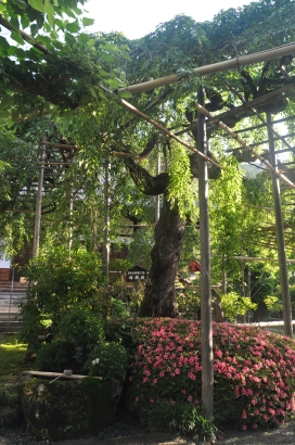 | 左 萬松山興禅寺 木曽郡木曽町福島5659 木曽義仲をはじめ開基木曽信道や木曽義康・義昌親子の墓がある 永享6年(1434)木曽氏12代の木曽信道が居建てを大桑村須原から木曽福島に遷し木曽義仲の追善供養のために鎌倉建長寺5世圓覚大華を勧請して開山したと伝える 中 種田山頭火句碑 たまたま 詣でた木曽は 華さかり 右 木曽義仲公お手植え桜2代目 時雨桜 時雨桜 | |