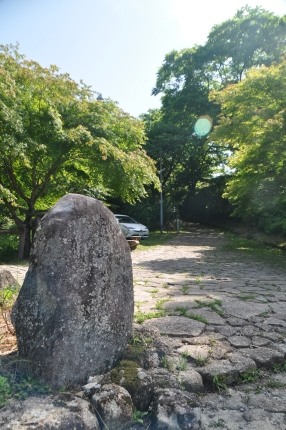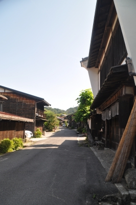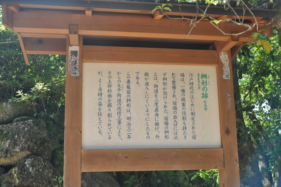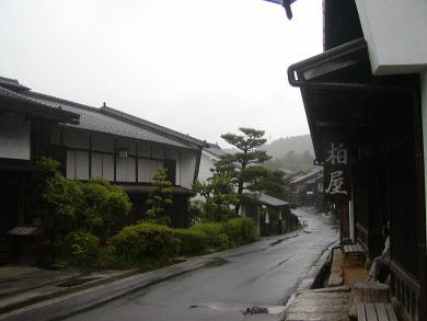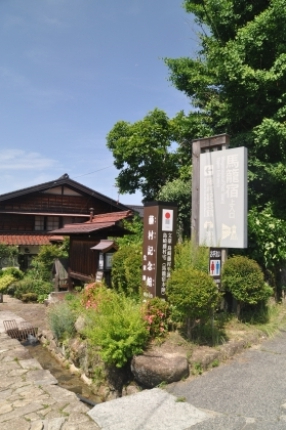 | 妻籠の升形 江戸時代に制定された宿場町は一種の城塞の役割を持たされ出入り口には必ず升形が設けられた 街道を二度直角に曲げ外敵が侵入しにくいようにした |