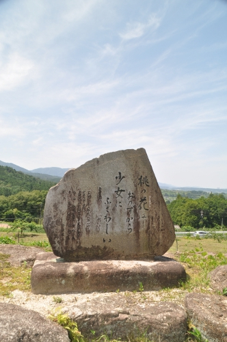 | 左 馬籠宿 ネットより拝借 右 藤村句碑 桃の花 おのずから 少女にふさわしい 岐阜県中津川市落合 |
