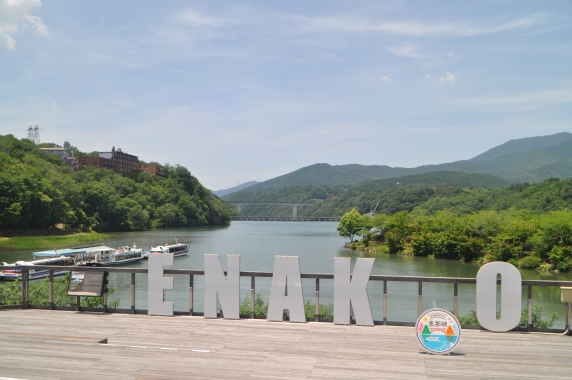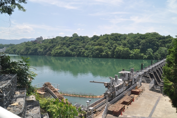 左 大井ダム 岐阜県中津川市蛭川5684 大井発電所と新大井発電所に送水され8.5万kwの電力を発電 木曽川水系で最初のダムで大正13年(1924)に完成 右 恵那湖 木曽川の激流を止めた大井ダム建設によって出来た人造ダム湖 飛騨木曽川国定公園・ダム湖百選の一つ 恵那峡県立自然公園 ![]()