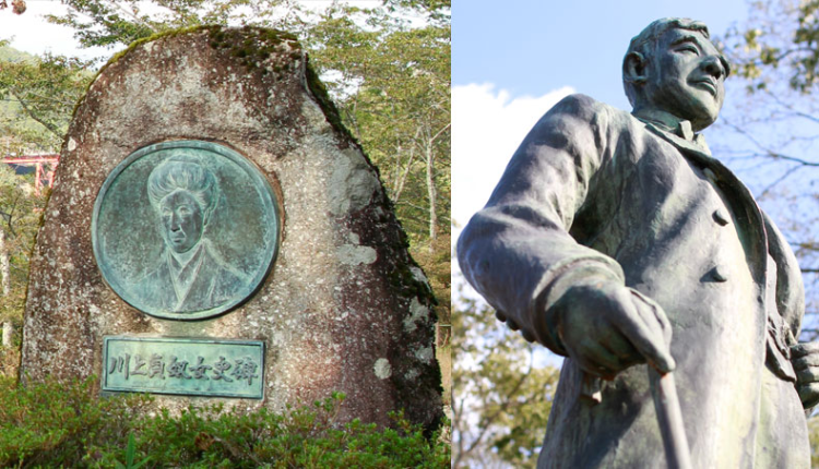 左端 砂糖一翁像 岩邨盛公園内 幕末から明治維新にかけての儒学者で佐久間造山・渡辺崋山などが門下生 著書言志四録は西郷隆盛・勝海舟・坂本龍馬等に大きな影響を与えた人物と言われる 小にして学ばば壮にして成し 壮にして学ばば老いて衰えず 老いて学ばば死して朽ちず の名言あり 中 成瀬桜桃子句碑 釈尊や 藩校大き 門ひらく 右端 下田歌子学問所 岐阜県恵那市岩村町88 女子教育の先駆者 実践女子大学創立者 幼名は平尾家の銘(せき)だが明治4年江戸に出て儒学者東条琴台に学び宮内省に出仕した 同年皇后陛下に和歌を献上したところその文才を認められて歌子の名を賜った経歴を持つ(トラベルフォトより拝借) 明治初期のこの山中でも才能は発芽する ![]()